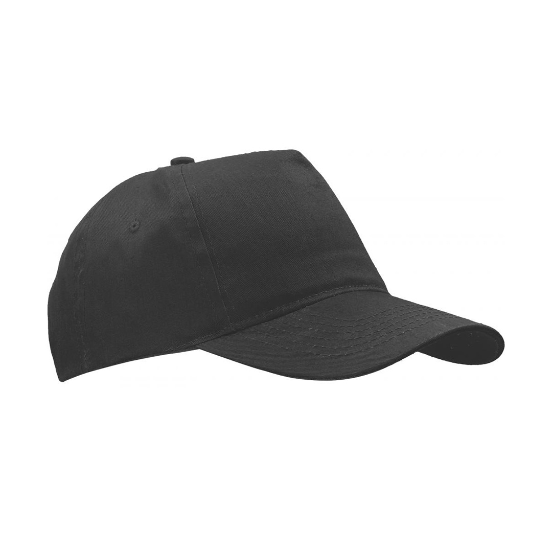 Kačket od 5 dijelova, 100% pamuk sa podesivim čičak trakom u crnoj boji.